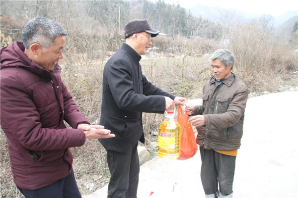 2018年2月7日,安康寶業(yè)公司扶貧工作組響應(yīng)市工商聯(lián)“萬(wàn)企幫萬(wàn)村”的號(hào)召,與漢濱區(qū)中原鎮(zhèn)麻廟村結(jié)為幫扶對(duì)象,在春節(jié)來(lái)臨之際他們冒著嚴(yán)寒和冰雪路滑,給該村47戶貧困戶送去了米面糧油和大肉。