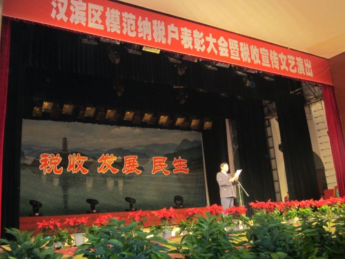 4月23日,張龍寶董事長(zhǎng)代表寶業(yè)(集團(tuán))公司參加“漢濱區(qū)模范納稅戶表彰大會(huì)暨稅收宣傳文藝演出。